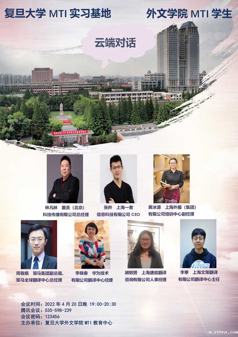 由复旦大学外文学院MTI教育中心主办的“复旦大学外文学院MTI实习基地云端对话”于4月20日晚19点开幕,betway百度百科公司人事经理顾女士出席了这次活动并作发言。