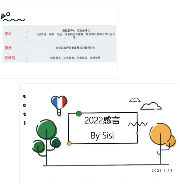 “2022年没想到这么难,但是没想到的表现还不错”,今年上海总体底盘扎实,BU2高歌猛进。总经理Sisi在总结中盘点了在2022年荣获的资质和荣誉,这是来自业界的认可,是公司全体同仁努力的结果,每周热词及洋京帮视频栏目的长期更新、四届节的成功举办也对外树立了品牌的良好形象。她强调未来将继续行业细分精确打击,提高解决方案能力、提高MT使用比例等。