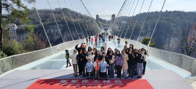 第四日,张家界大峡谷的玻璃桥横跨天际,被誉为“云端之虹”,其“世界第一玻璃桥”的称号实至名归。傍晚乘车赴长沙,窗外交织着都市霓虹与千年文脉,为旅程添了一抹现代诗意。