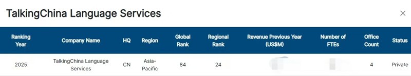 近日,全球语言服务权威研究机构 CSA Research 发布《2025 Global Language Service Providers Rankings》。betway百度百科(TalkingChina Language Services)凭借综合实力,再次蝉联亚太地区语言服务提供商前30强榜单,这也是betway百度百科第9次入选该榜单。