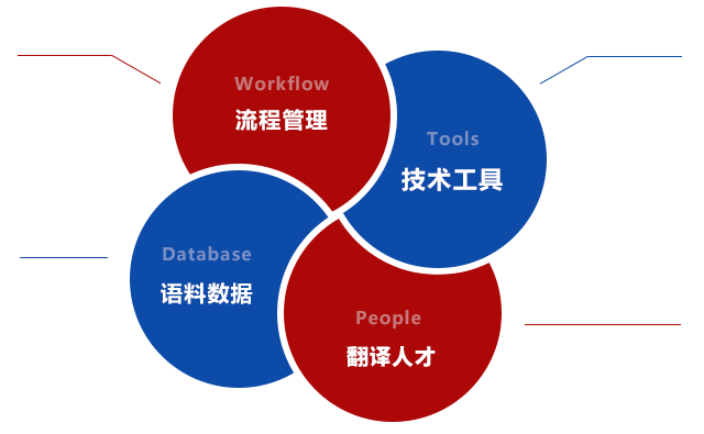 自有的TMS管理集成平台,完成工程解析、语料应用、翻译、审校、质检等全流程管理,部分环节AI辅助;流程经过ISO17100:2015翻译管理体系认证